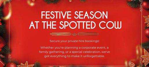 The festive season is here at The Spotted Cow! 🎄 Whether it’s a corporate do or a family gathering, we cater for everyone. Book your festive events with us today and let us take care of the rest.