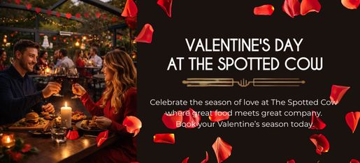 Join us this Valentine’s Day at The Spotted Cow, where romantic vibes meet traditional British food. Book your Valentine’s Day with us and make it one to remember.